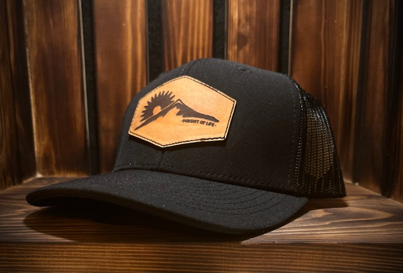 Black Mountain Logo Youth Leather Patch Hat